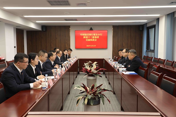 12月13日,集團(tuán)與建行延安分行座談交流。中國建設(shè)銀行延安分行黨委書記康遙,集團(tuán)黨委副書記、總經(jīng)理楊永宏參加座談。